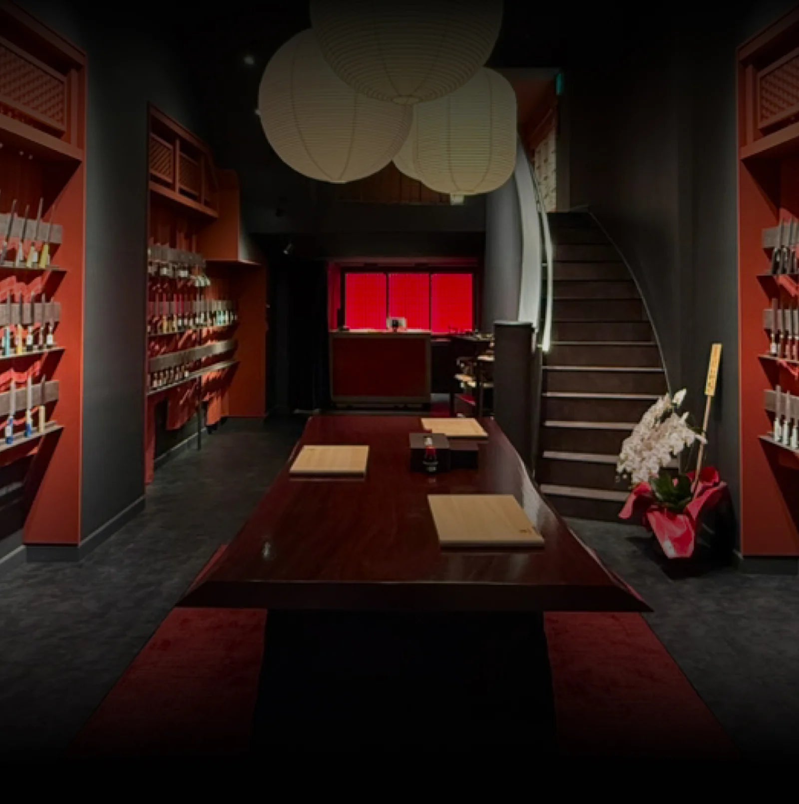 MUSASHI JAPAN Kyoto Sanjo, notre première boutique à Kyoto, a ouvert à l’automne 2024. L’intérieur présente un design unique mêlant eau et roche, inspiré du célèbre sabreur Musashi Miyamoto. Au deuxième étage se trouve un bar à saké où les clients peuvent profiter d’une nouvelle expérience alliant sakés soigneusement sélectionnés, mets assortis et culture traditionnelle des yōkai japonais.